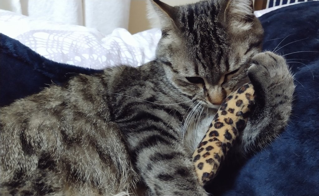 今日は豹柄くんと寝るようです。おやすみ〜
