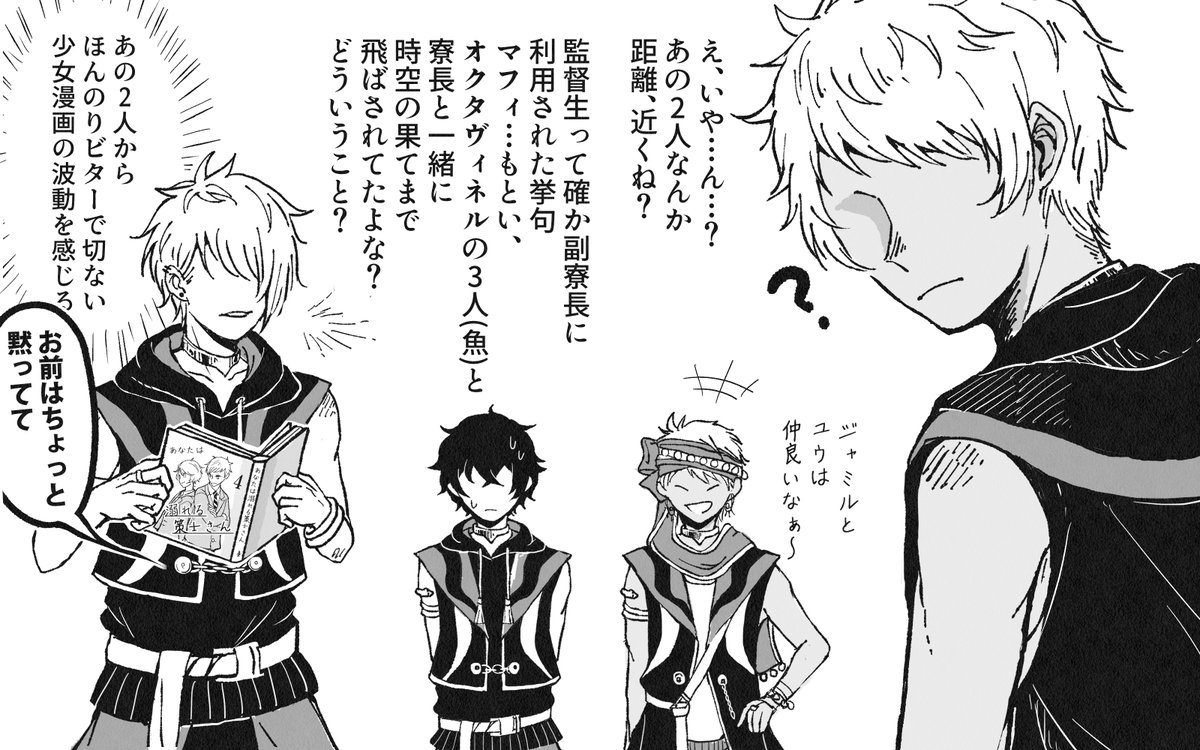 -かまいたかっただけ(ジャミ監) ちょっかいかけるジャミさんを描きたかった落書き。 🐍→🌸でも🐍→←🌸でもかわいい。 ※顔あり監督生♀