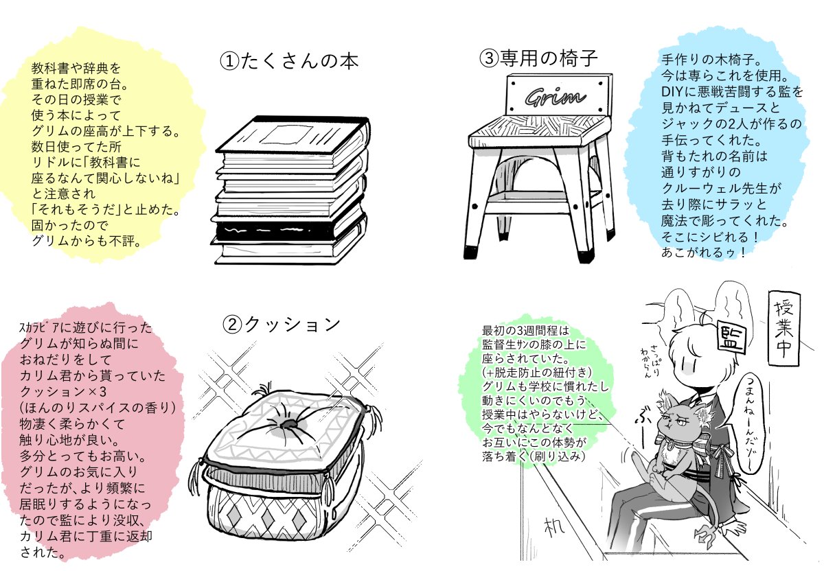 魔法史の授業の時「備え付けの椅子だけじゃ🐱机に届かないんじゃ…何かに乗ってる🤔?」ってなったので台座について考えてみた。 ※監督生います