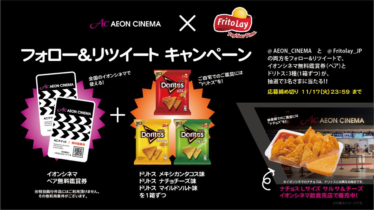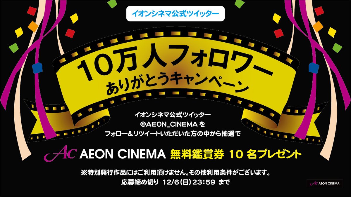 フォロー&RTいただいた方の中から抽選で10名さまに、11/21(土)~の3連休にも使える、イオンシネマの無料鑑賞券🎫が当たる❗