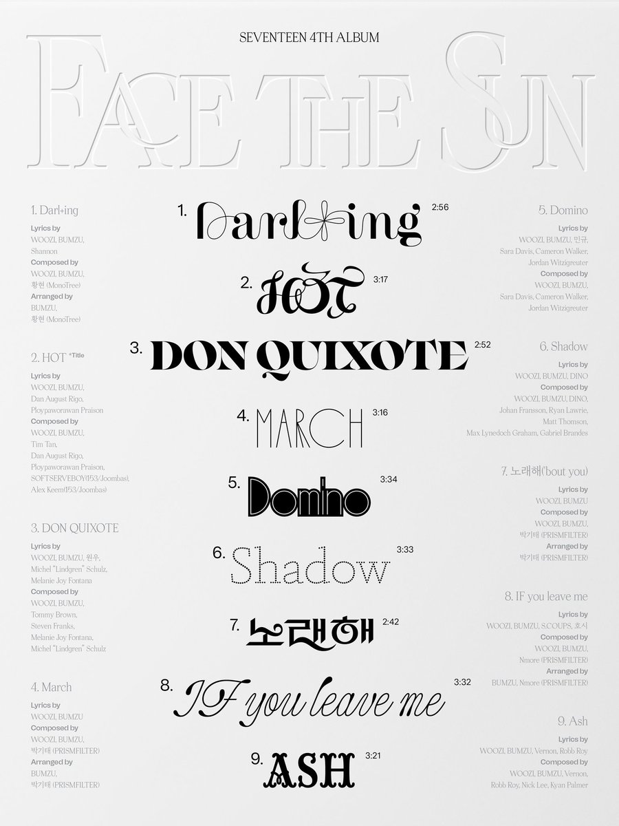 Seventeen tracklist each era @pledis_17 #세븐틴