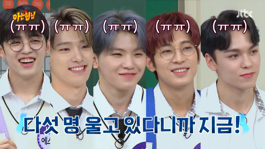 During Domino shoot hoshi was just laughing for no reason, others weren't talking or laughing but shua started laughing. he said he started laughing seeing the members faces