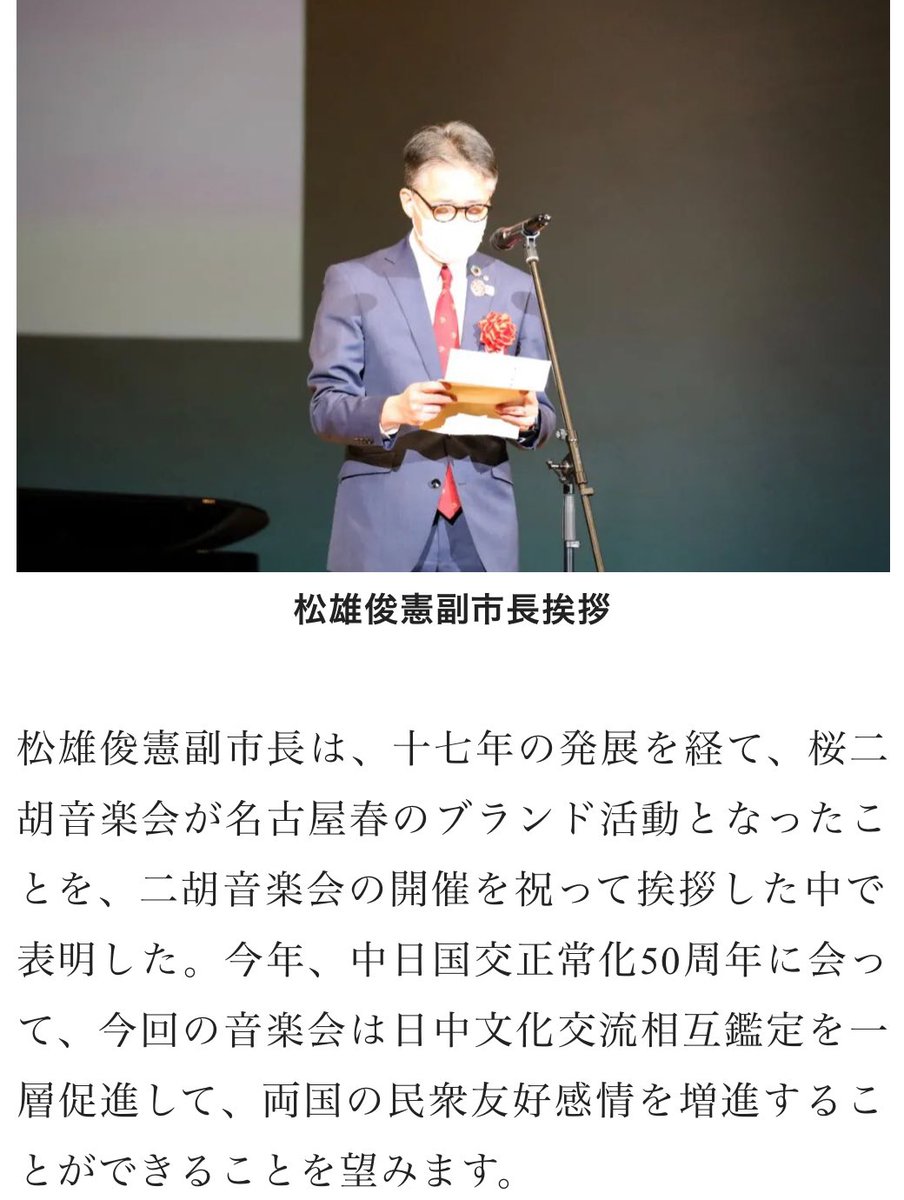 中国共産党後援のイベントで挨拶する名古屋市副市長。