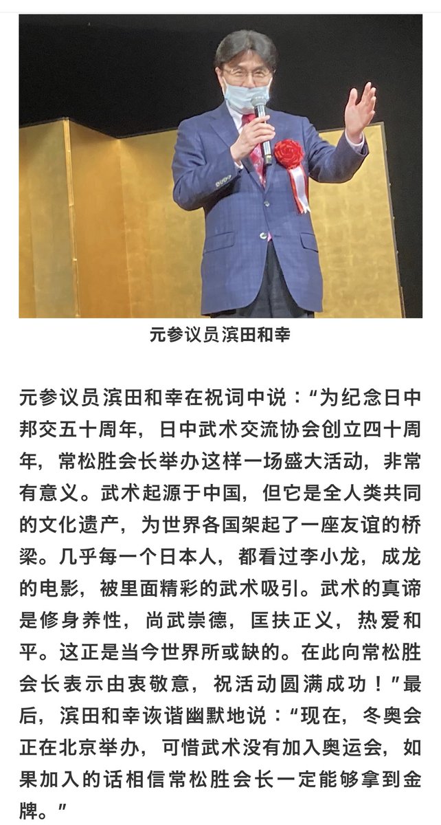 日中武術交流協会創立40周年演武会でスピーチする浜田和幸。 twitter.com/S10408978/stat…