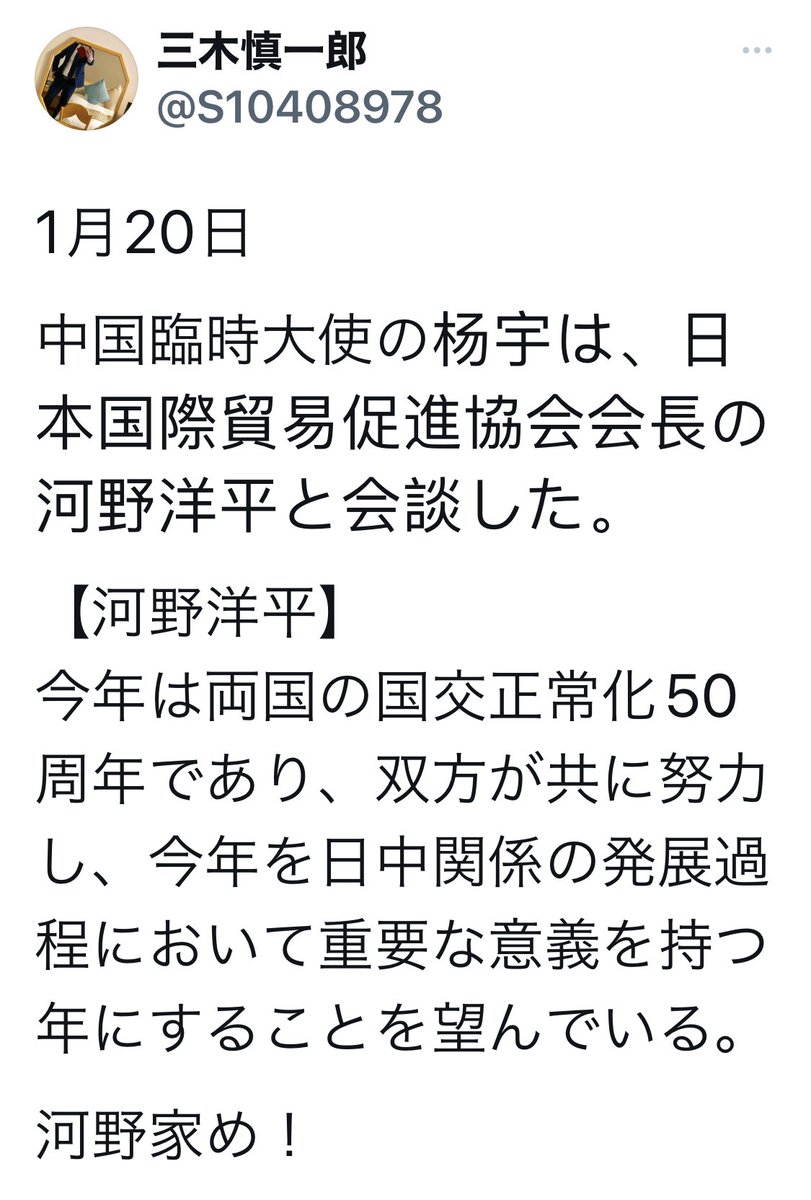 元宏池会会長. 大平正芳氏の孫で、玉木雄一郎議員の元公設秘書の渡辺満子さんから中国へのメッセージ。