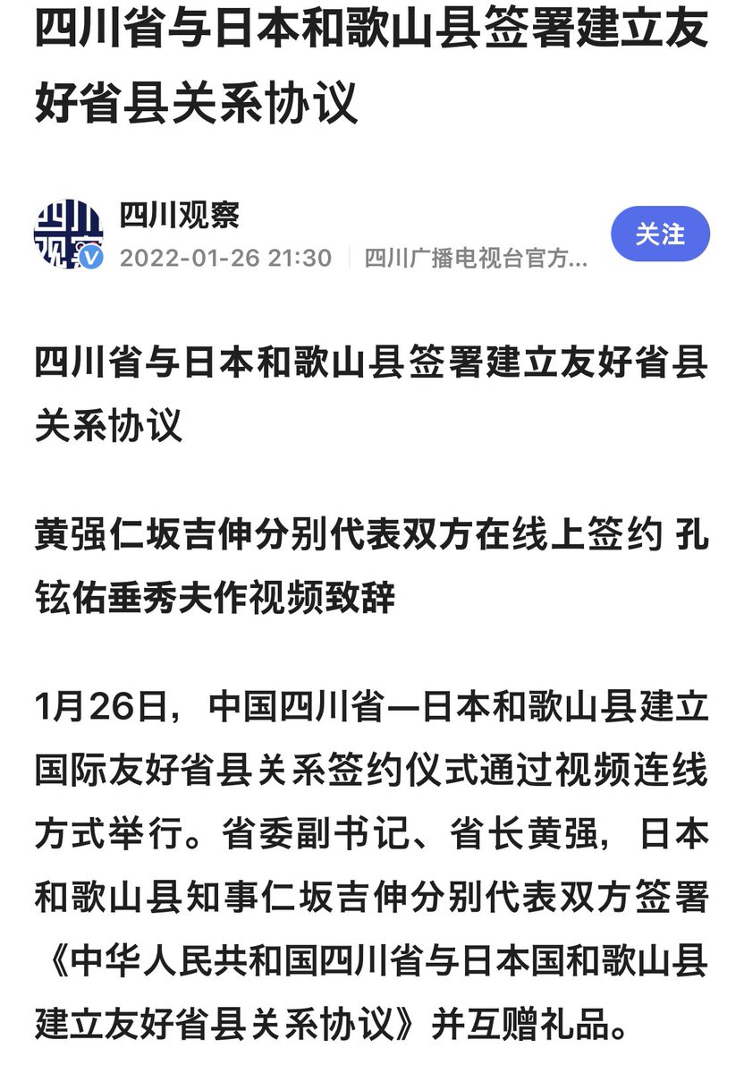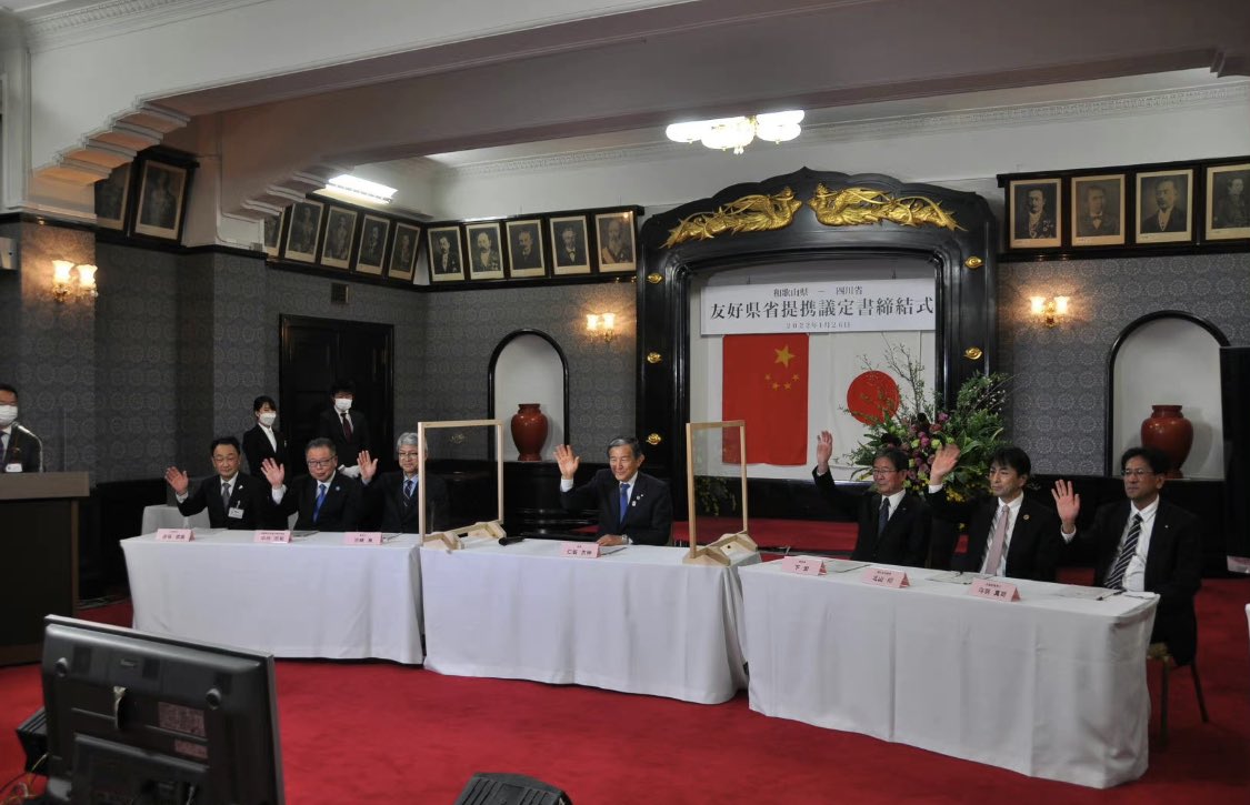 昨日1月26日の和歌山県と中国四川省の友好県省提携議定書の締結式。