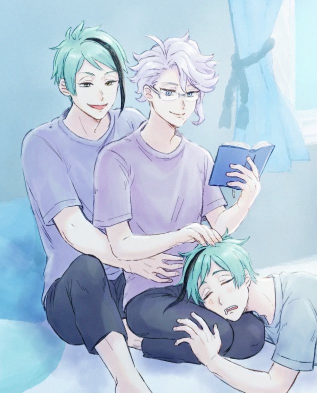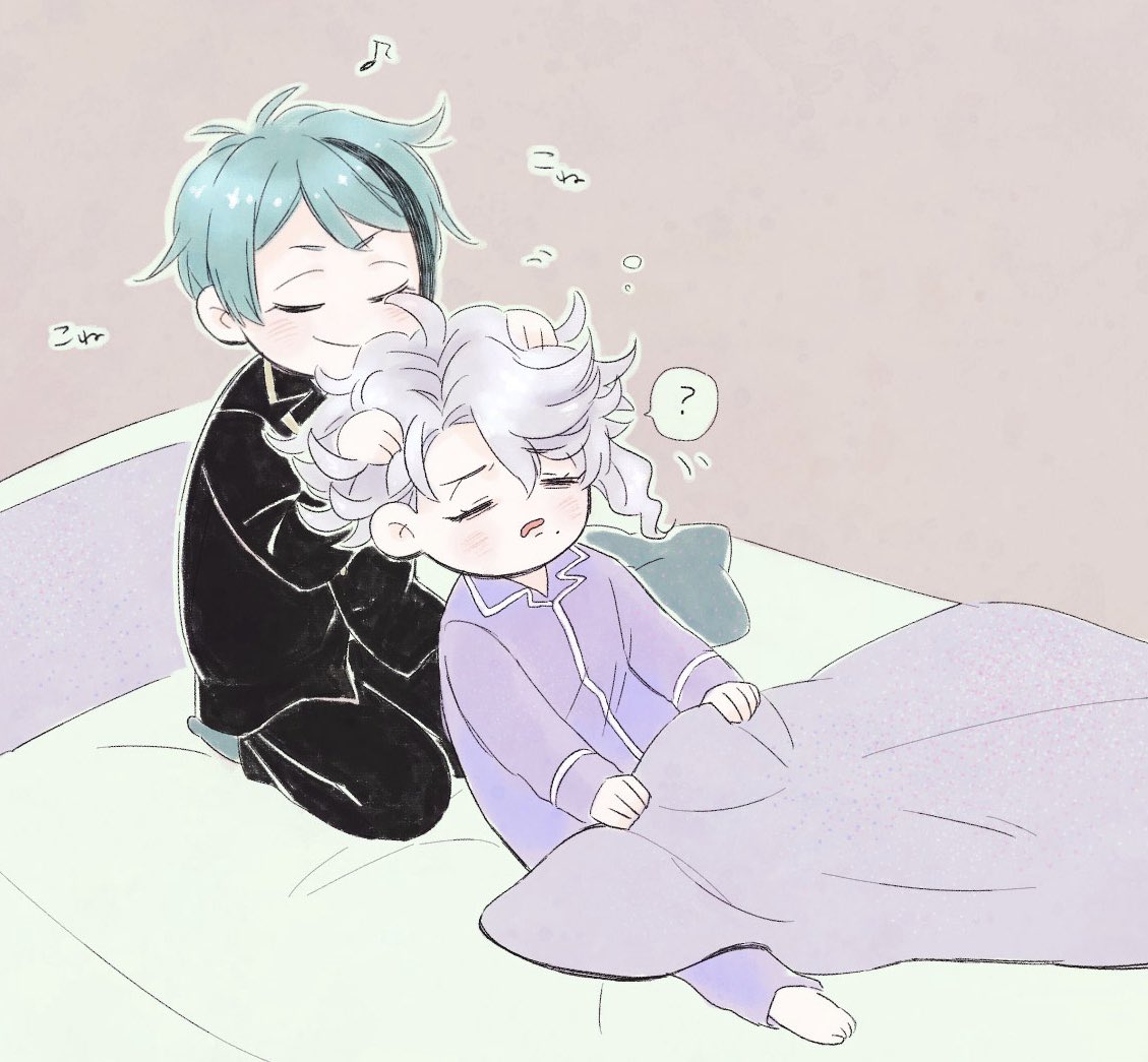アズ職人の朝は早い。夢うつつの寝癖がついたフワフワあたまをこねこねととのえるのだ。 ジェイアズ🐬🐙