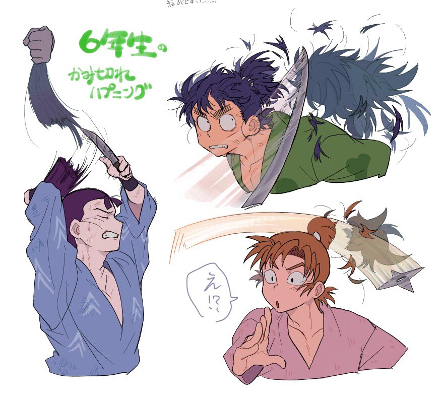 髪切れハプニング 六年生 箱からもらったお題、癖な予感がしたので描かせていただきました。⚠️偏見 後をつけていたはずの標的の仲間に背後を取られる仙蔵と小平太 なんとか気づくも自分の放った手裏剣が返ってくる伊作 後輩の前では露骨に出さないようにするのだろうけど、裏で不本意感出してそう