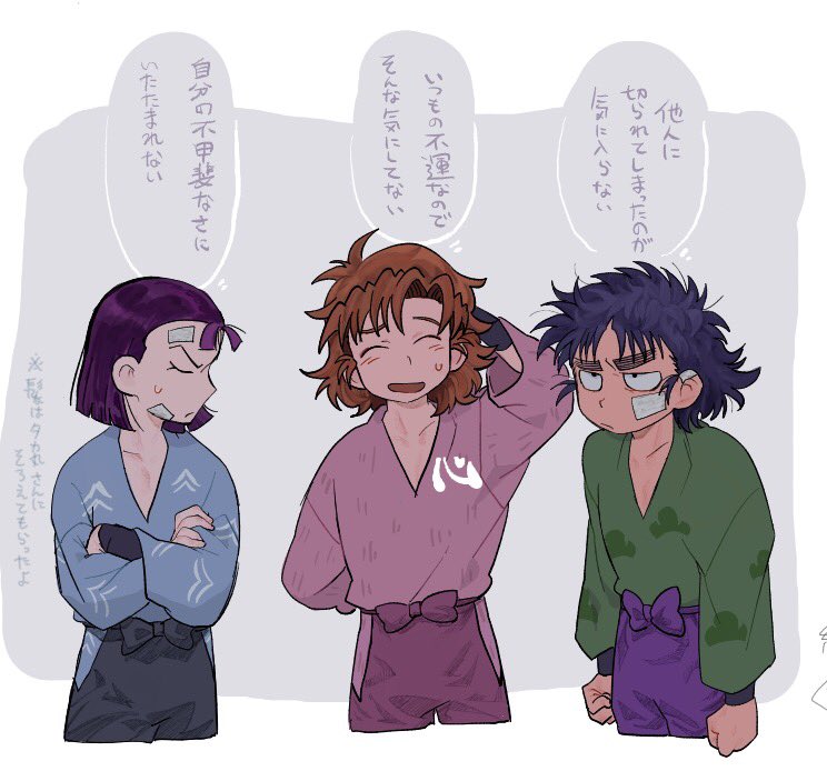 四い 喜八郎は上半身、滝夜叉丸は下半身がお互いよりムキムキそうだなあと思った