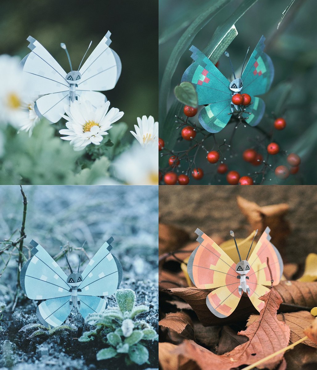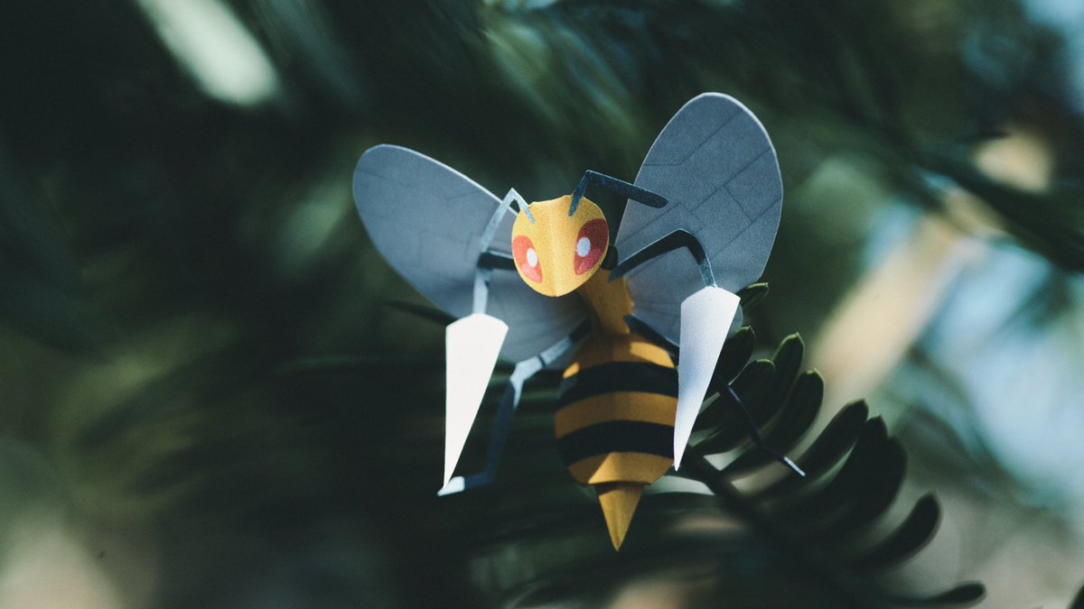 紙で作った虫ポケモンたちを自然の中で撮影しています