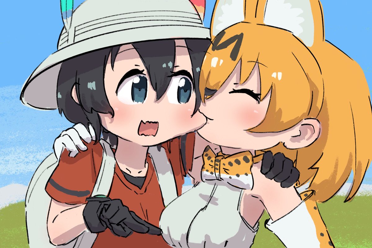 サーバルちゃんにピースサインを教えたかばんちゃん