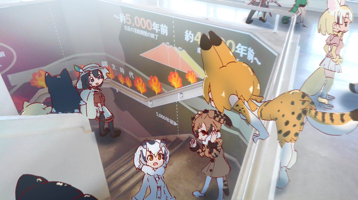 桜島に旅行に来たサーバル一行