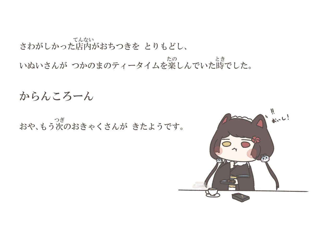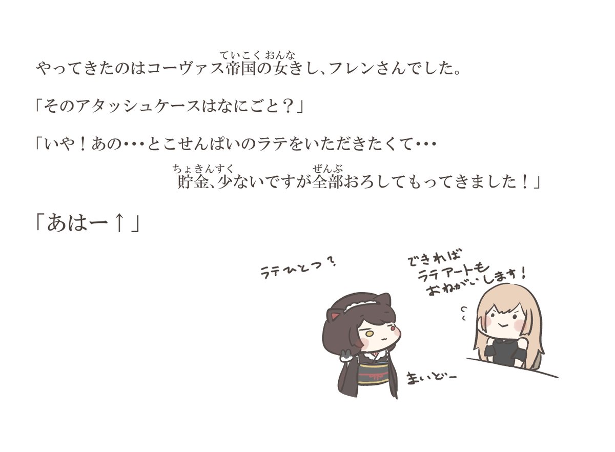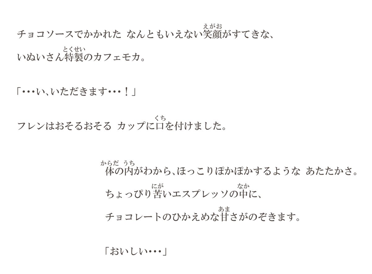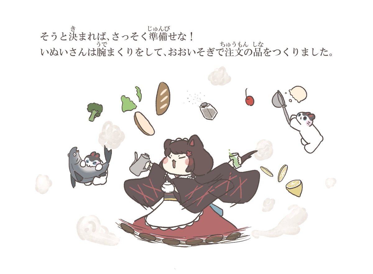 既刊「いぬいさんのきっさてん」⑦ (ひとつ前の投稿ではフレンさんの注文内容がラテになっていましたが、修正前のデータをあげてしまったようで正しくはカフェモカです!失礼しました)