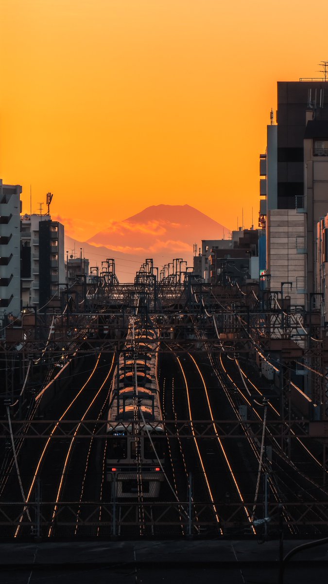 夕暮れ時の富士