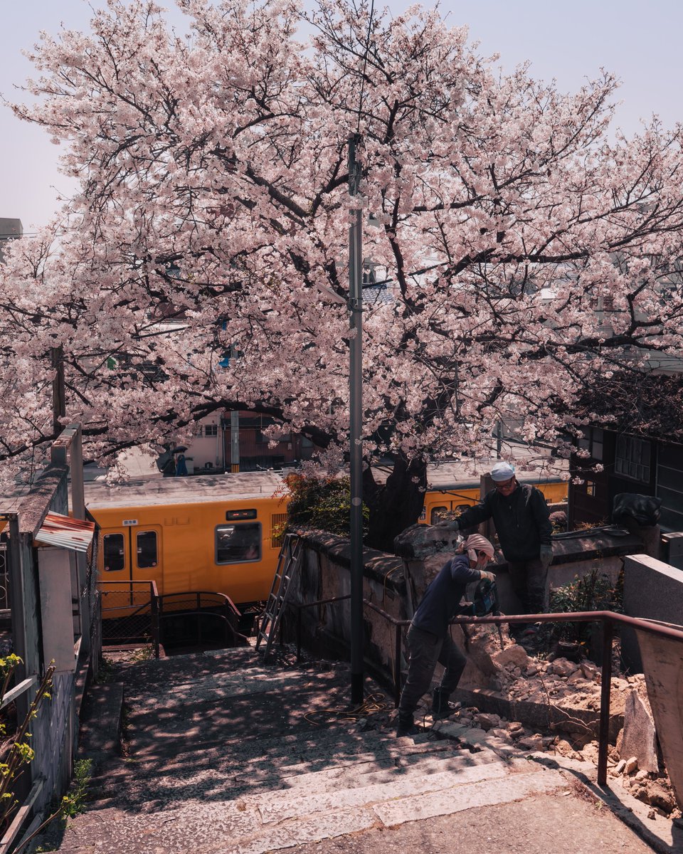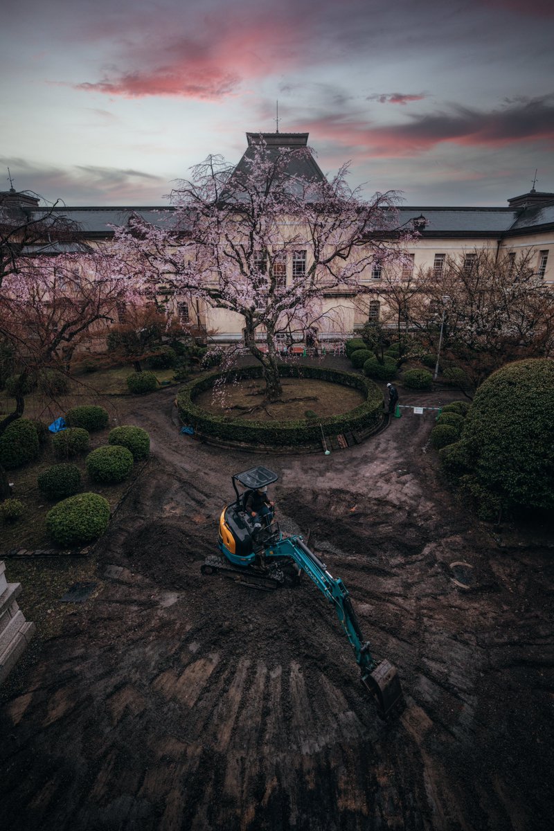 桜撮りに行ったら工事中だったので、いっそ働く現場をカッコよく撮ってみた