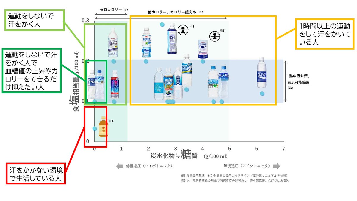 で推奨される熱中症対策飲料をすみわけしました。