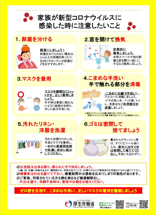家庭内でコロナに感染された方が出た時の対応方法貼っておきます。