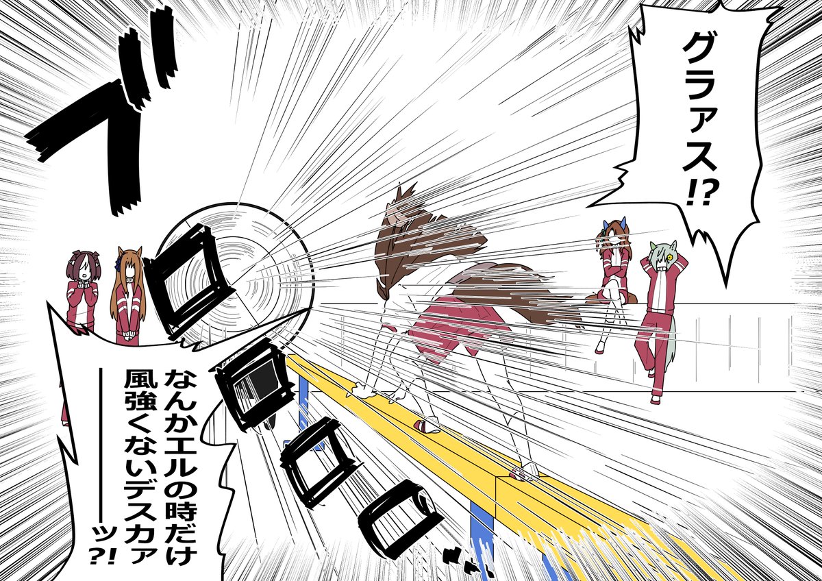 体育の跳び箱で、みんな跳んでたから自分もいけると思って挑んだキングヘイローと同期組。