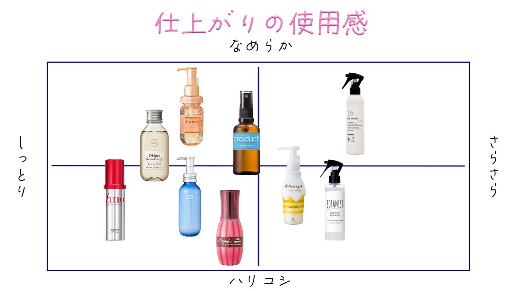 ⑦ヘアミルク→8割乾かす→ヘアオイル