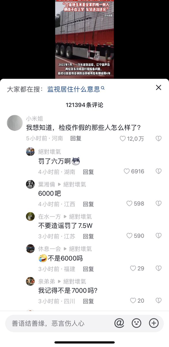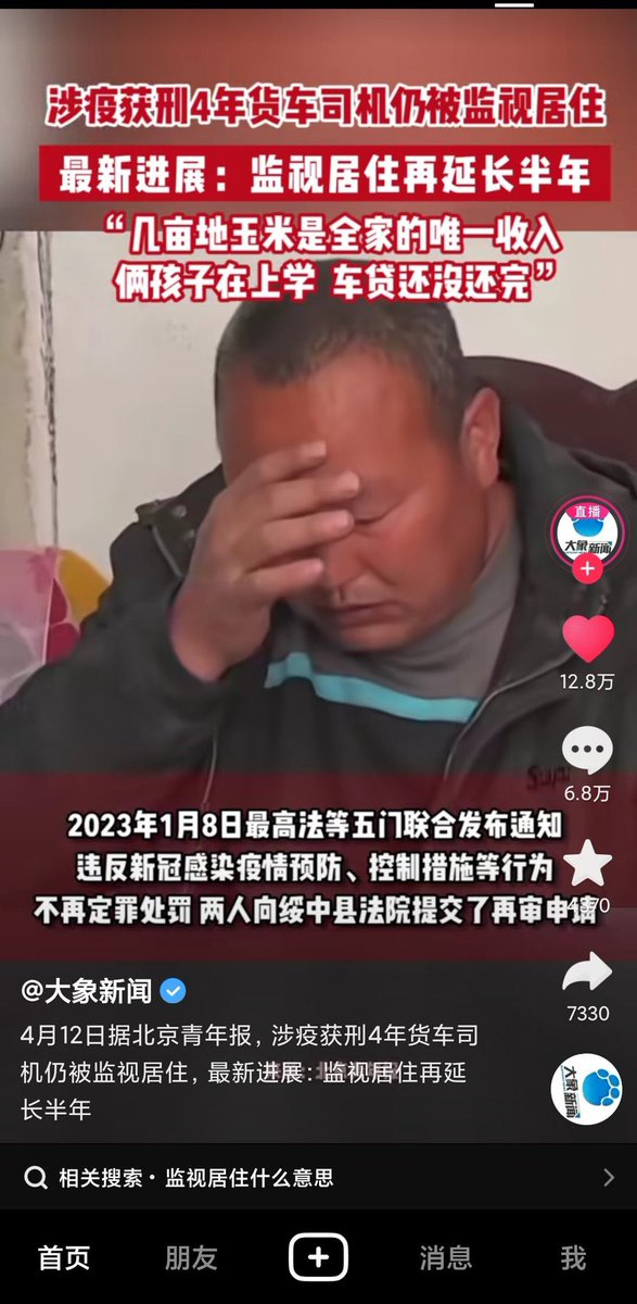 4月12日'据北京青年报报道,此前因涉疫获刑4年的卡车司机目前仍然被监视居住,引发广大网友讨论… twitter.com/i/web/status/1…