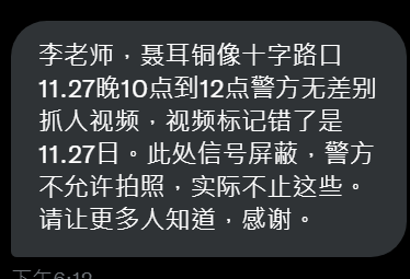 上海 聂耳铜像十字路口11.27晚10点到12点警方无差别抓人视频,视频标记错误是11.27日。
