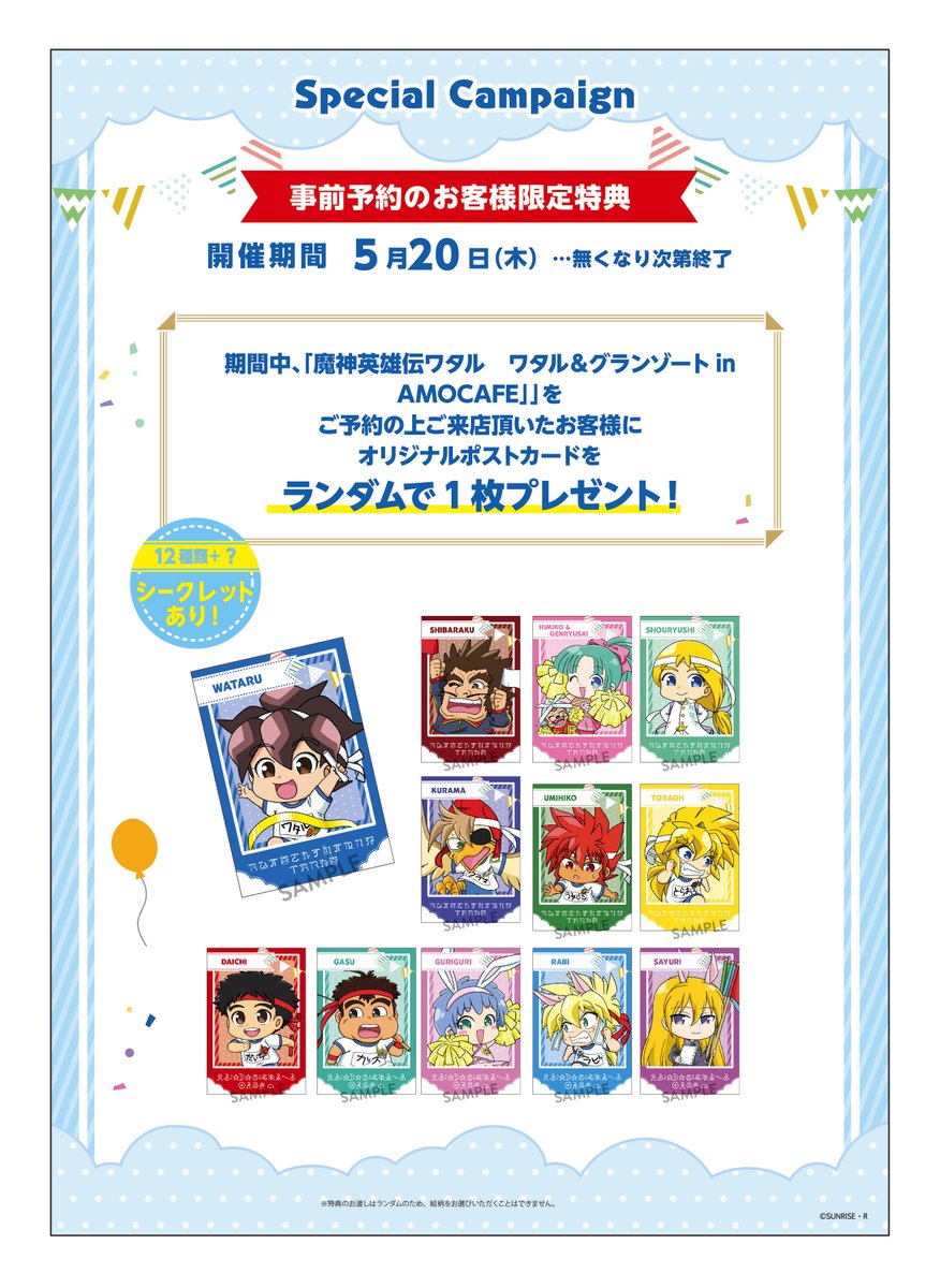 お知らせです!『魔神英雄伝ワタル&魔動王グランゾート×AMOCAFE』が東京池袋でリバイバル開催決決定✨新規ミニキャライラストは運動会🎉