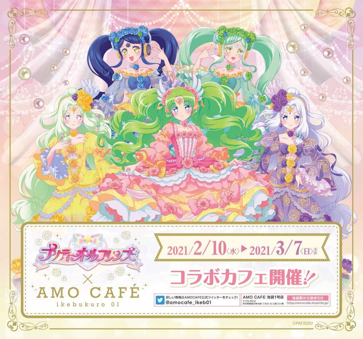 プリティーオールフレンズ×AMOCAFE池袋店 スピリットミュールズカフェの予約開始です✨そして華麗なチームのミニキャラも華麗に登場♪🎫グッズ、ノベルティ、キャンペーンメニュー公開です❗コラボメニューは週明けの発表をお待ち下さい‼amocafe-reserve.jp/spirit_musell/
