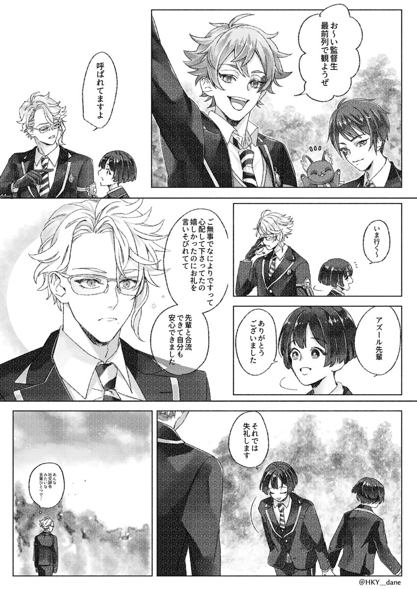 ゴスマリの行間を読んだような漫画 監督生🌸顔あり フロ監→ジェイ監→アズ監の順で🐚監っぽい感じ