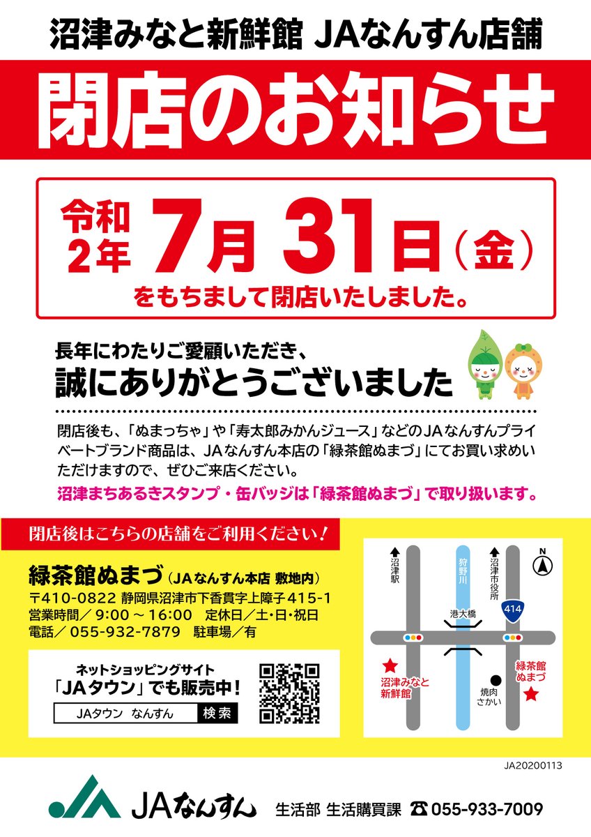 本日をもって、沼津みなと新鮮館JAなんすん店舗が閉店となったよ!