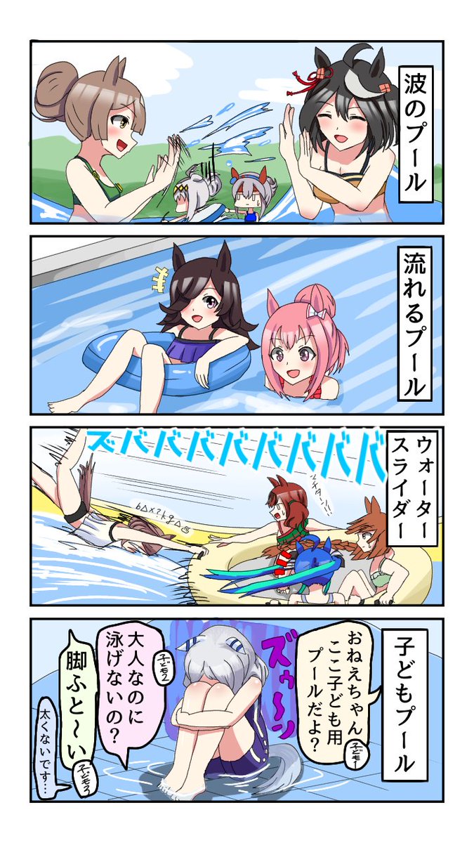 大型プール施設四コマ