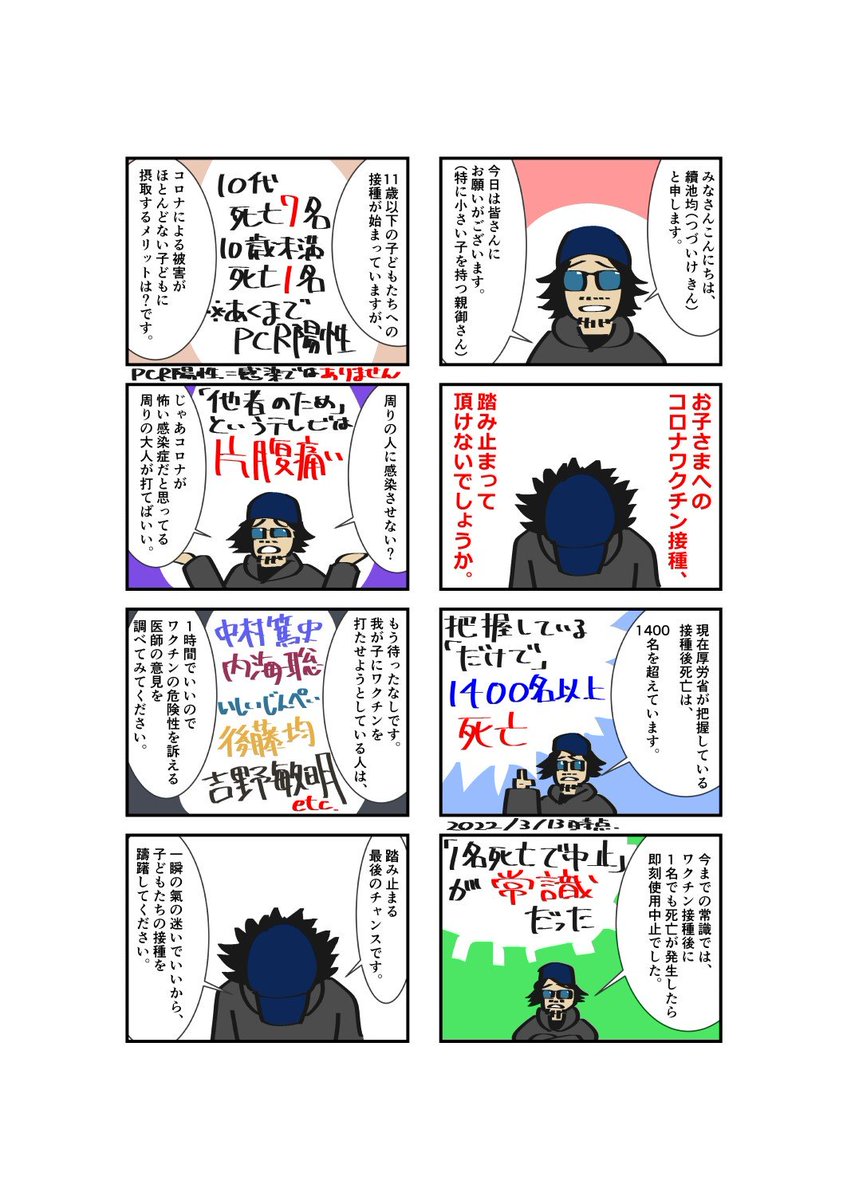 子どもたちへの接種を踏み止まってください。一瞬の氣の迷いでもいいです。躊躇でいいです。一度、真剣に調べてみてください。いったい何が起きているかご自身の目で確かめてみてください。それから判断しても遅くないと思います。後悔先に立たずです。よろしくお願いいたします🙇♂️ twitter.com/Kin_Tsuzuike/s…