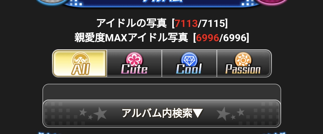 モバマスのアルバムで、現時点で埋められるアイドル全部埋まりました! 協力頂いた皆さん、本当にありがとうございます! 後はラストフェスの卯月特訓前後のみです!