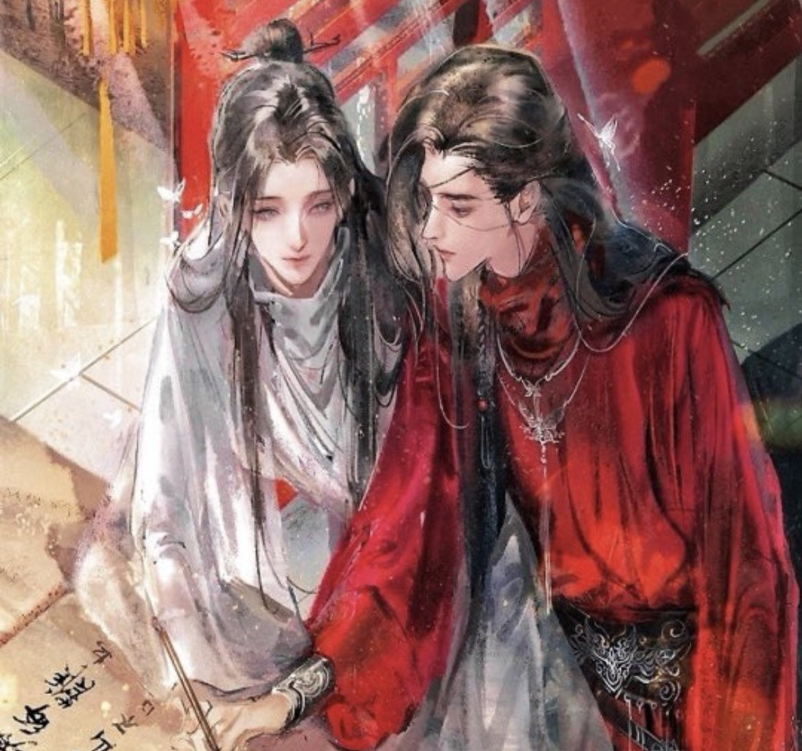 xie lian trying his best to teach hua cheng calligraphy but all they do is stare at each other or make out 🫣
