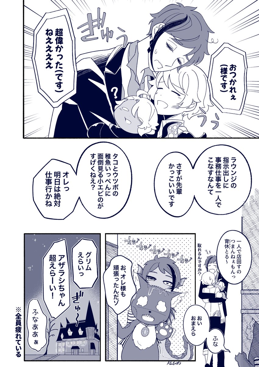 稚魚った🐙と🐬をフロ監と🐱が世話する話