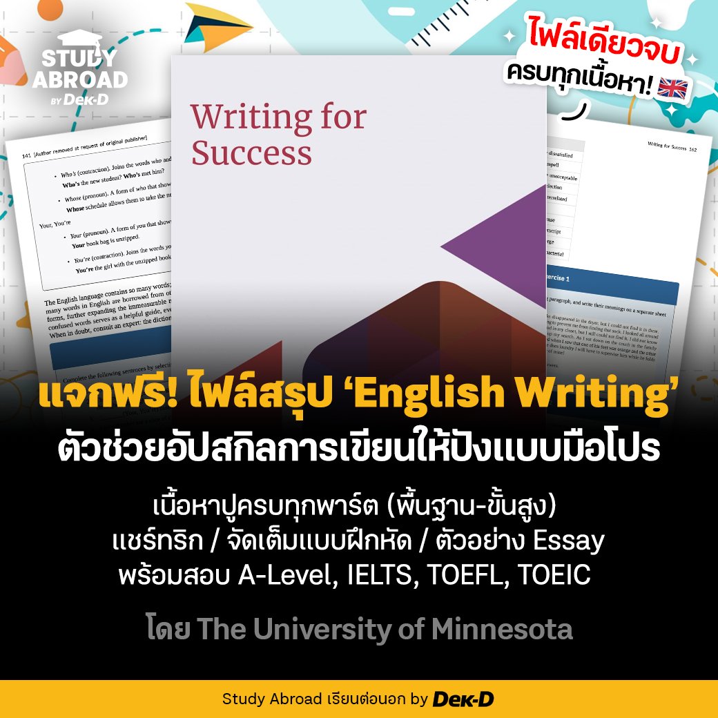 📝 𝐋𝐞𝐭’𝐬 𝐈𝐦𝐩𝐫𝐨𝐯𝐞 𝐘𝐨𝐮𝐫 𝐖𝐫𝐢𝐭𝐢𝐧𝐠 𝐒𝐤𝐢𝐥𝐥𝐬! ✨#ดาวน์โหลดฟรี ไฟล์สรุปเนื้อหาเกี่ยวกับ English Writing ส่งตรงจาก The University of Minnesota บอกเลยเนื้อหาครบมาก ทั้งไวยากรณ์, โครงสร้างประโยค, การเขียน Essay, IELTS etc.