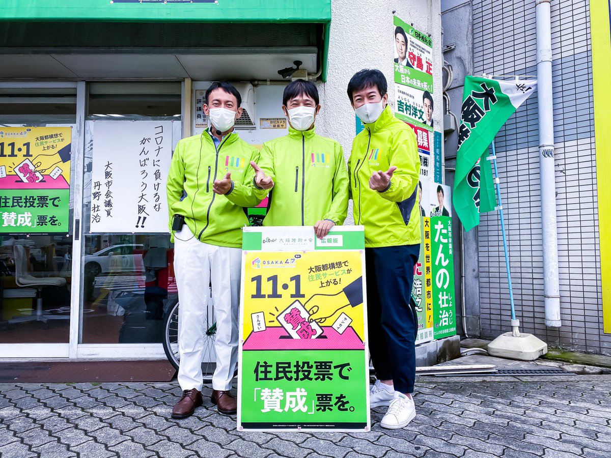 本日は都構想の投票日です。大阪を過去に戻さない。5年前は「こんなことなら投票に行っていればよかった」との多くの声を聞きました。前に進める最後の機会です。投票に行きましょう。そして、大阪都構想に「賛成」の1票を投じてください。