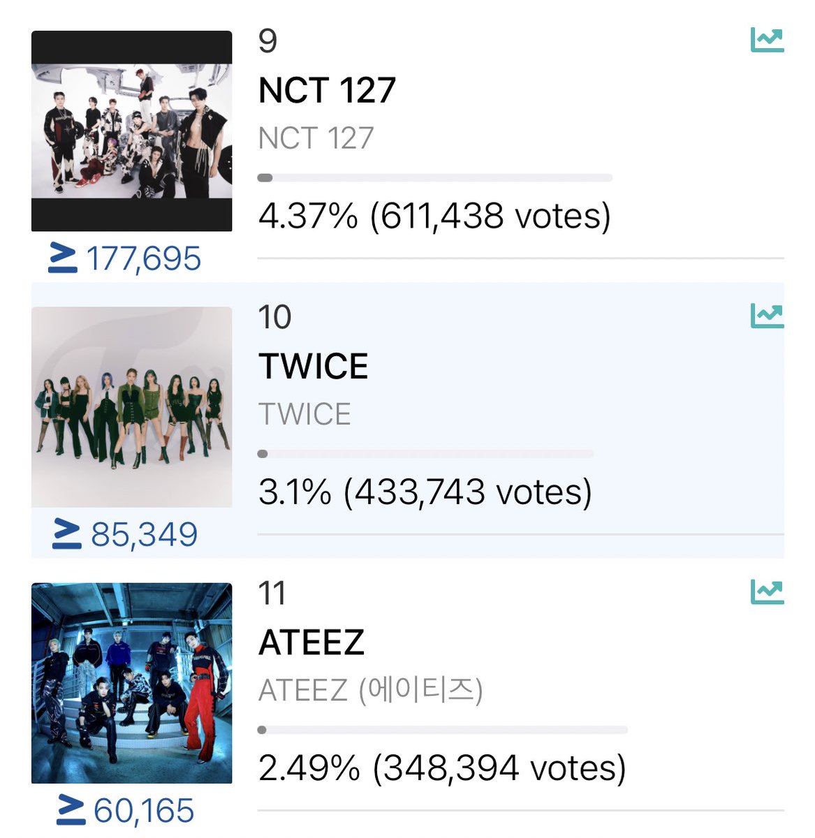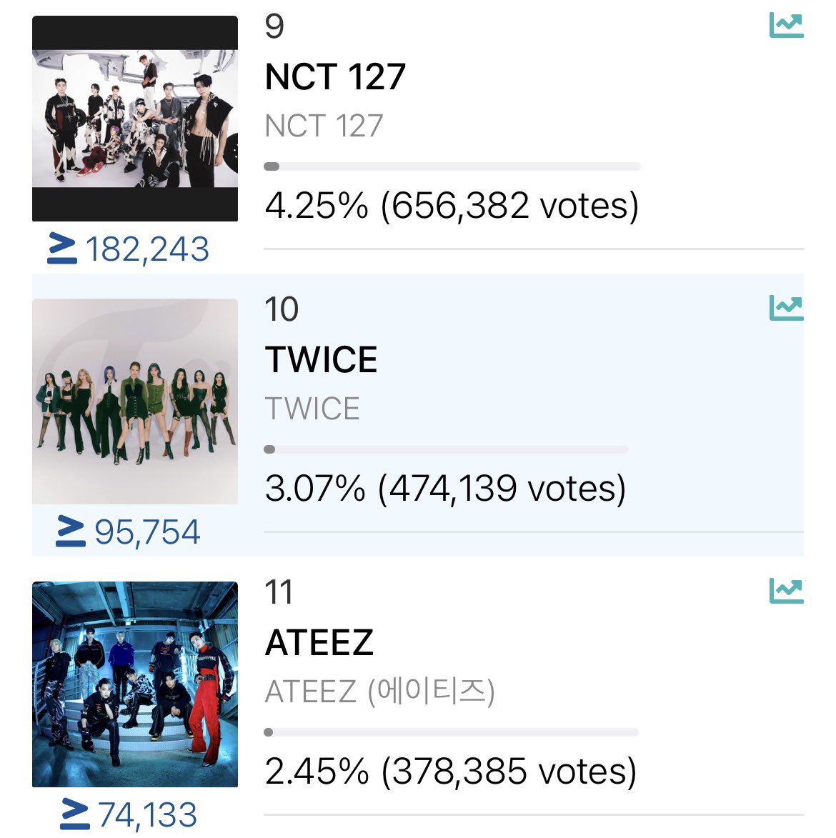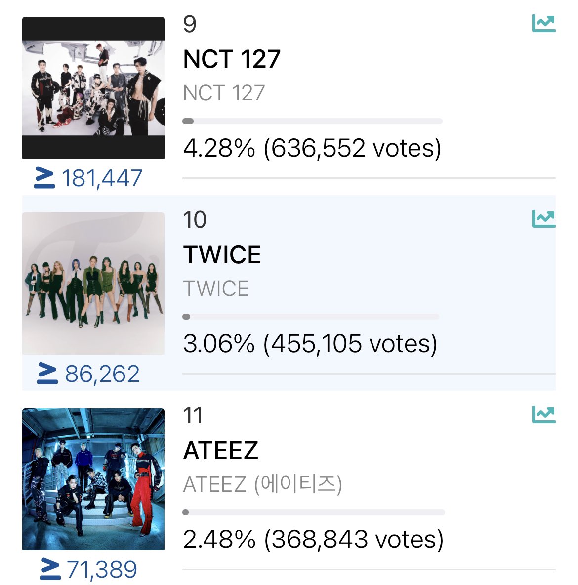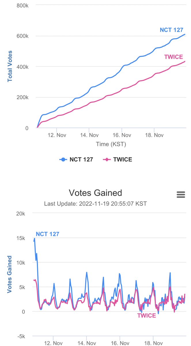 票差はどんどん増えてますが、今の投票率はtwiceが若干上です!今なら追い越せます!