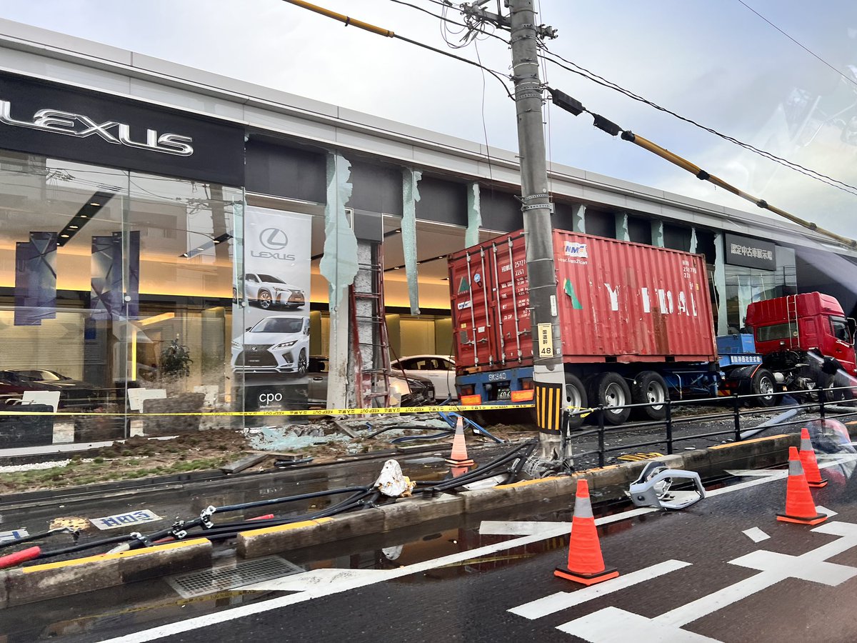 レクサスにトラックが突っ込んでる。一体どうなってるの。怪我人がいないことを祈ります。
