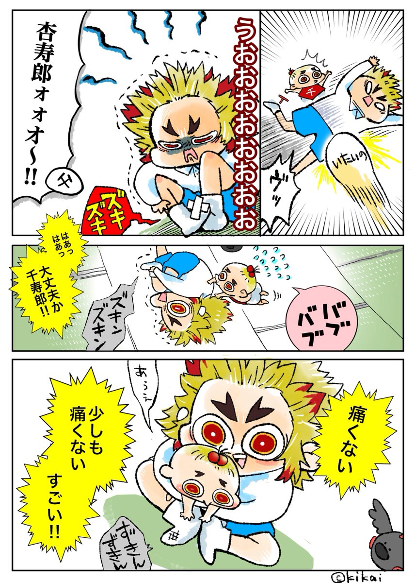 ご都合kjによって幼児化した🔥柱 柱共闘・千くんの背中編 ※謎世界線 ※少しだけ戦闘の描写があります ※続…?