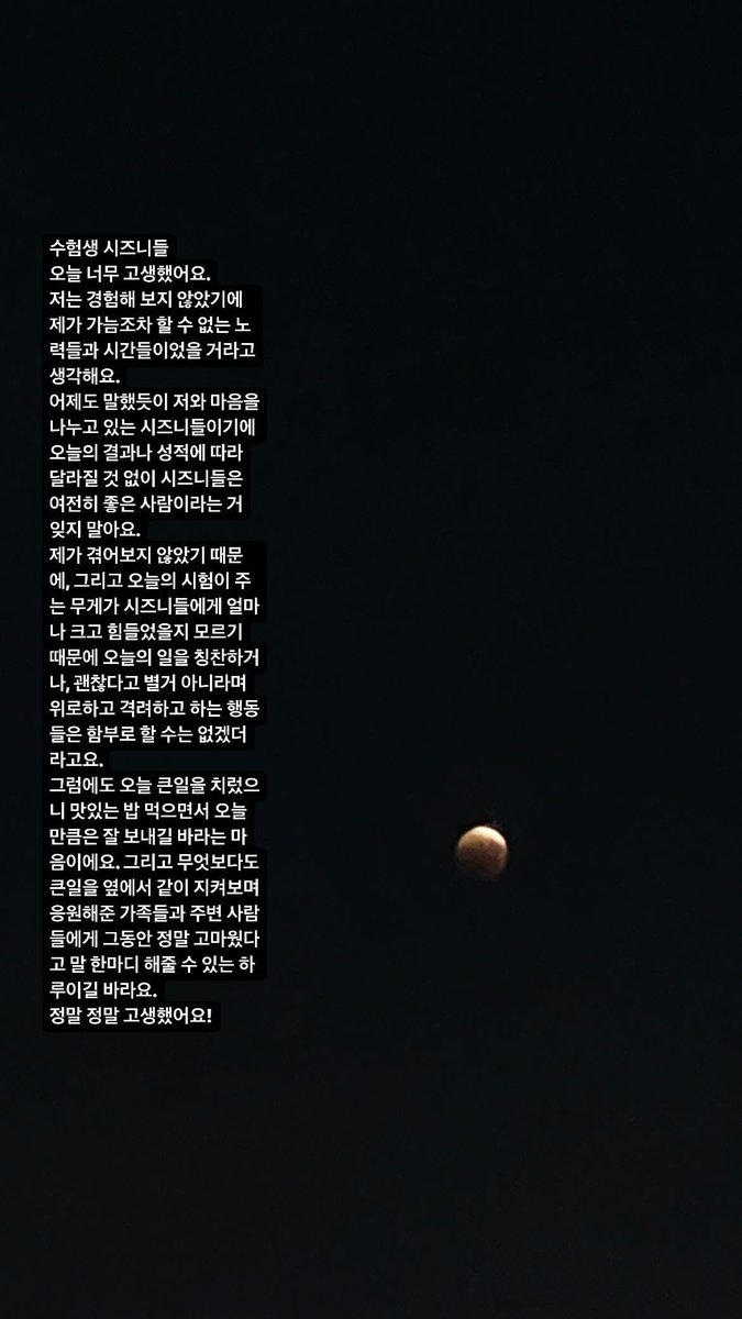 수험생 시즈니들 오늘 너무 고생했어요.