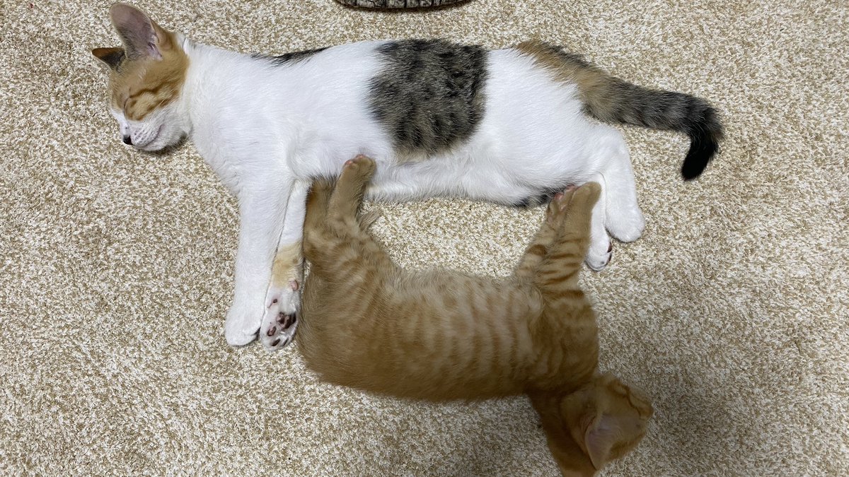 そういえば昨日ぷりんともち寝てたんだけど、息の合った寝方してた