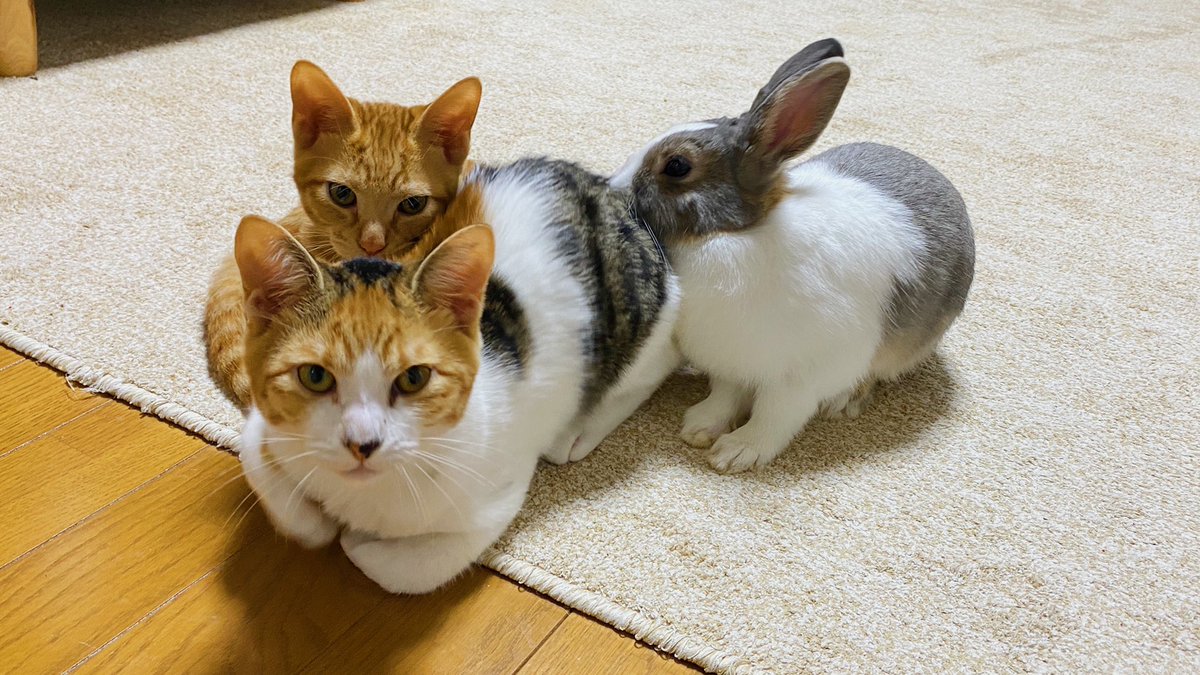 仲良し3人組🐱🐱🐰
