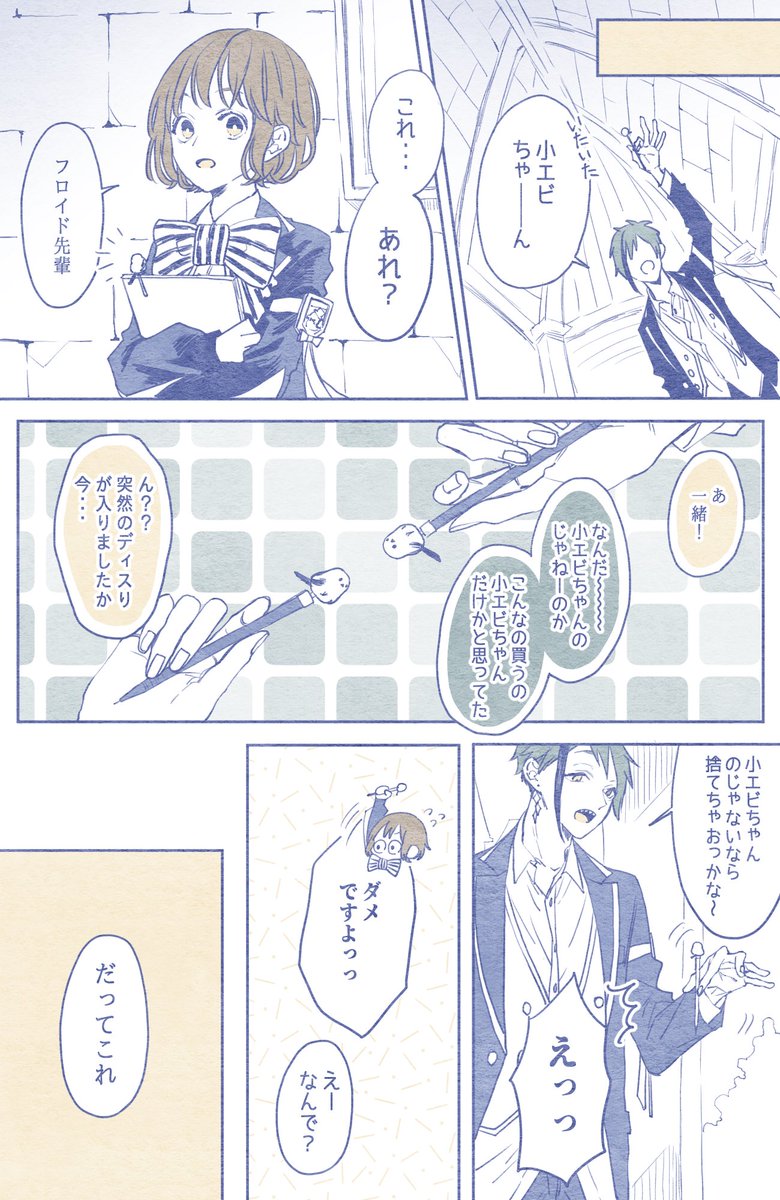 ぽふっ 🦈「.......なにこれ。」 🦐「ジェ...ジェ◯トーニです....」 🦈(名前聞いたんじゃねぇし...) フロ監♀rkgk