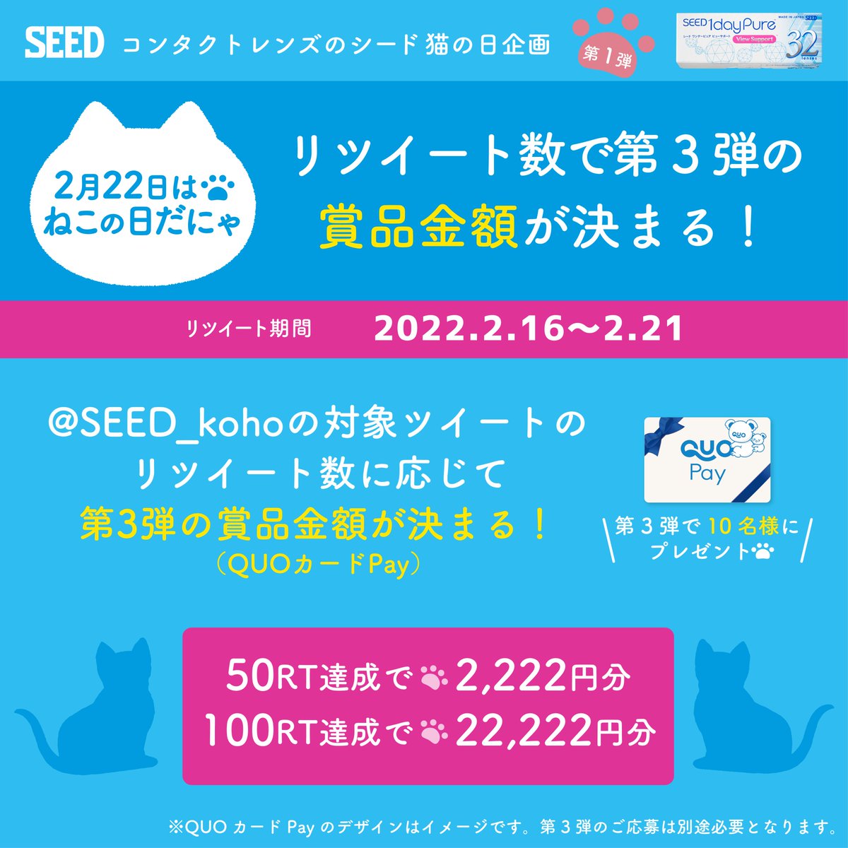 このツイートの #RT 数に応じて🐾第3弾🐾の賞品金額(QUOカードPay10名様分)が決まる!【2/21 18:00 〆】