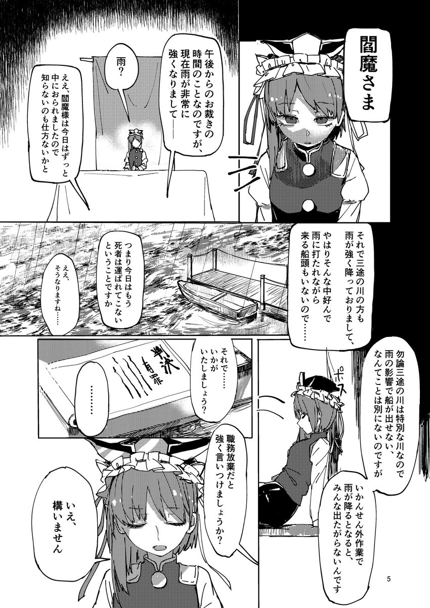 紅楼夢13新刊情報です。ついに「死ニ神、死ニ人」が完結を迎えたので総集編を頒布いたします。総ページ数はなんと84P! スペース:ややこしや【C-18b】価格は¥1000を予定しています。 小町が死を経験した者達やとある仙人と語り合ったり映姫様から逃げ回ったりする話です。