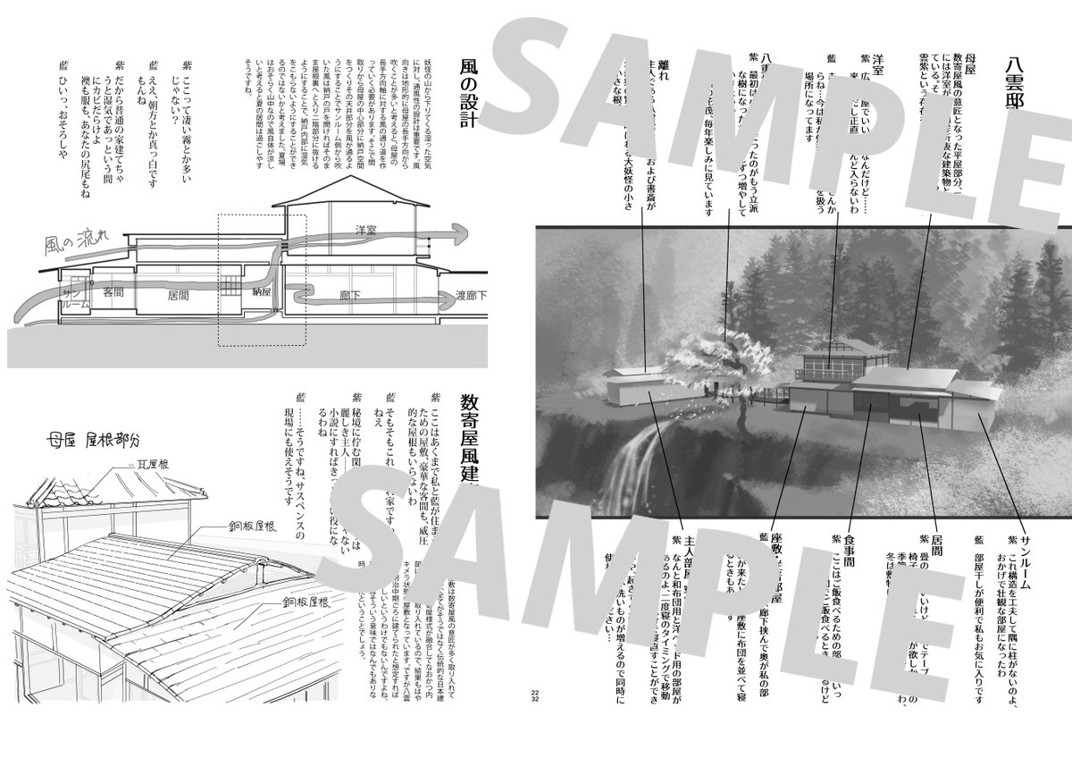 【秋例大祭・紅楼夢新刊】10/14,10/21の新刊情報です 八雲邸を妄想して設計した謎な本となっております。建築を全く知らない人でも楽しく読めるよう意識してつくりましたのでどんな人でも楽しく読める一冊となっております。そしてついで日本建築の知識もつけれられる!これは読むっきゃない!