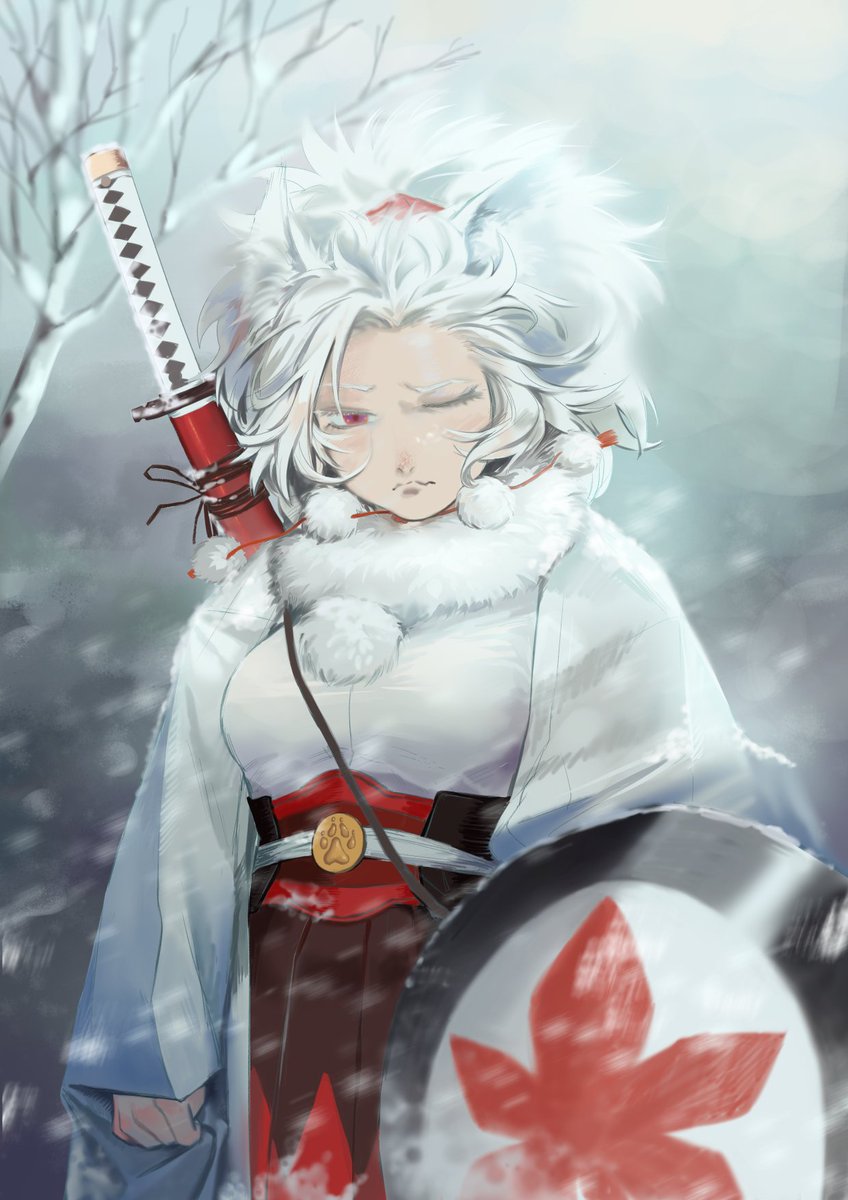 犬走椛の絵描きました。冬毛がもっふもっふ。