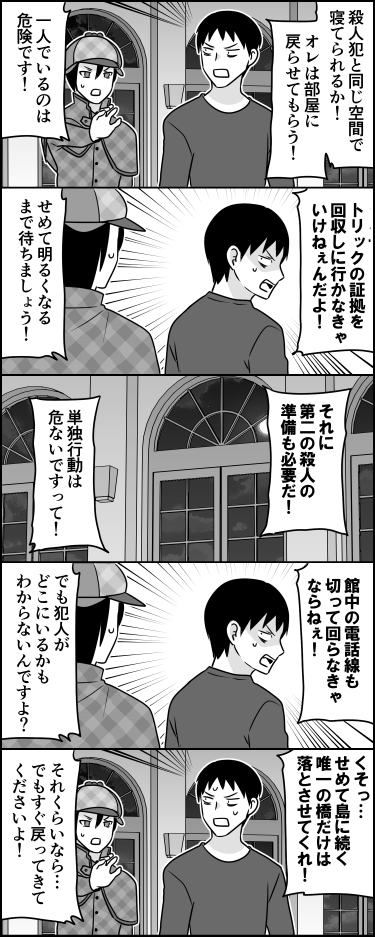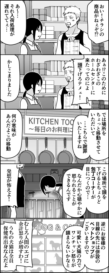 多段オチの五コマ漫画です