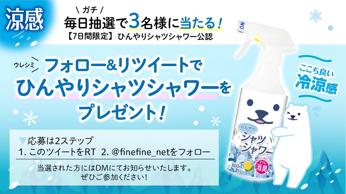 フォロー&リツイートでひんやりシャツシャワーをプレゼント🏆