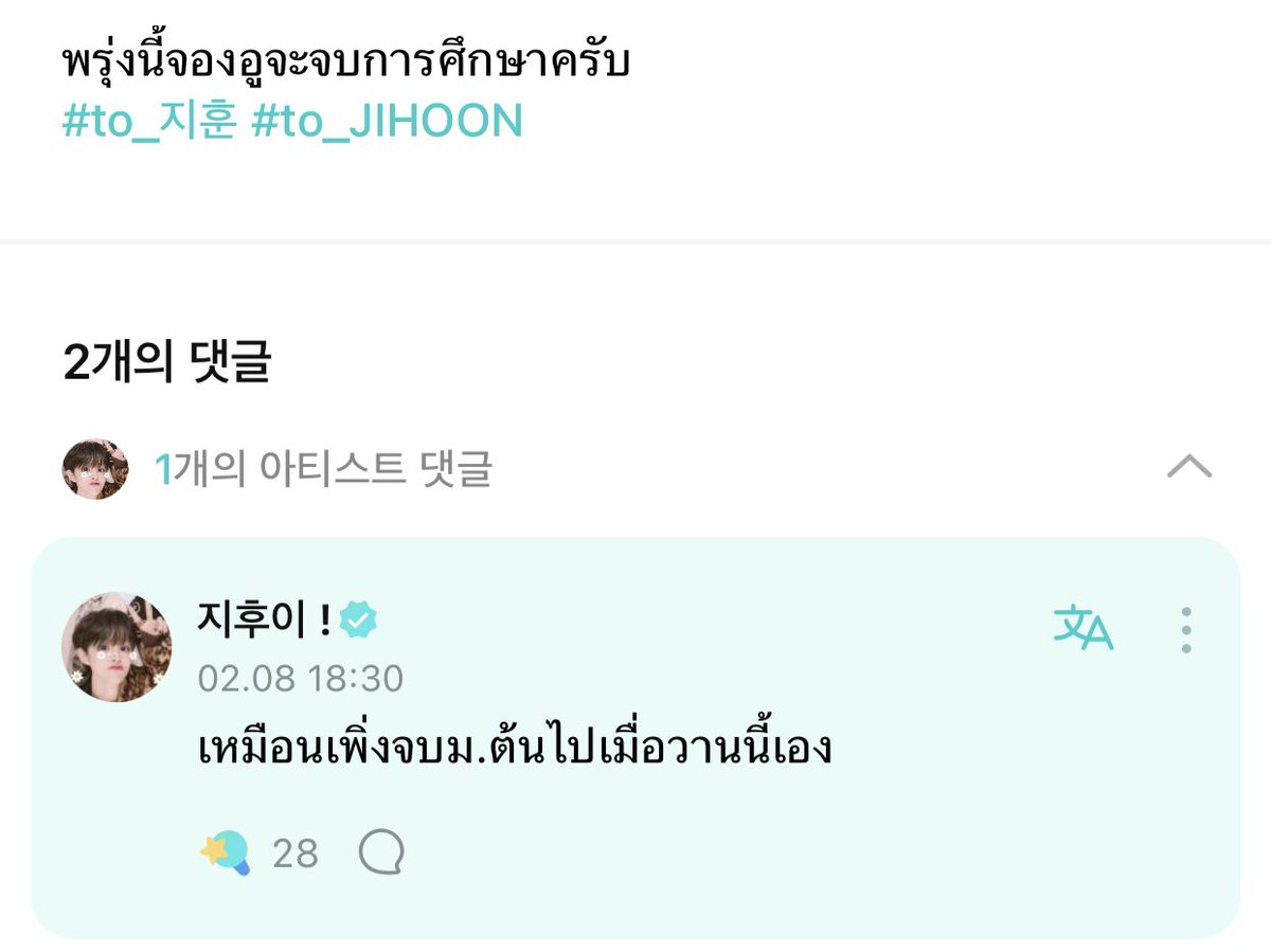 แล้วมีคนแซวว่าป้ายนี้ของจีฮุนเตรียมให้น้องล่ะมั้ง 🤣 เพราะฮีเคยบอกว่าจะทำป้ายให้จองอู (쩡쩡이의 졸업식) มารอดูพรุ่งนี้กัน ตื่นเต้น